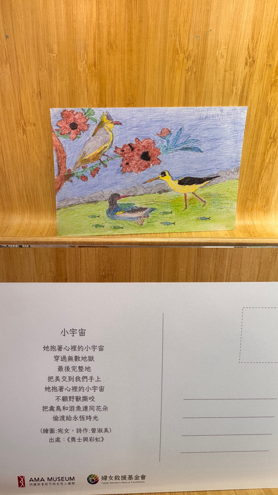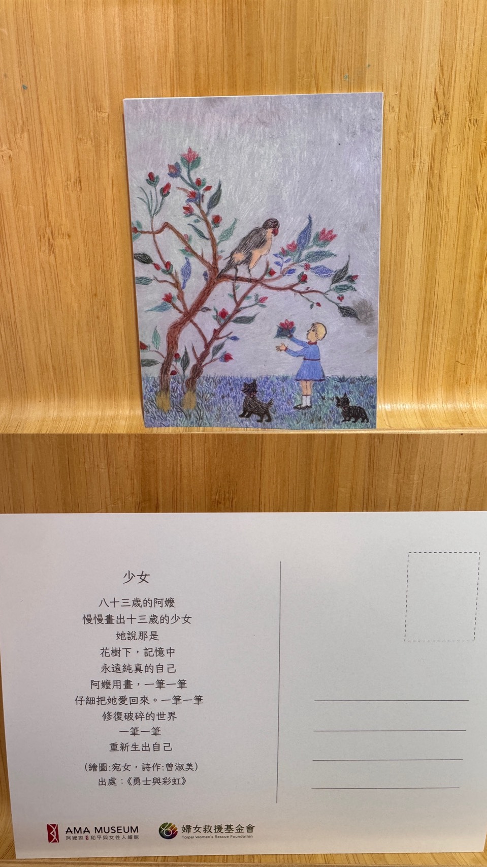 明信片正面,是台灣「慰安婦」倖存者阿嬤們歷經風霜後,在紙上留下的生命痕跡。或許只是一抹簡單的線條,或是一團揉雜的情感,卻是他們從歷史暴風雨中破繭而出的勇氣。