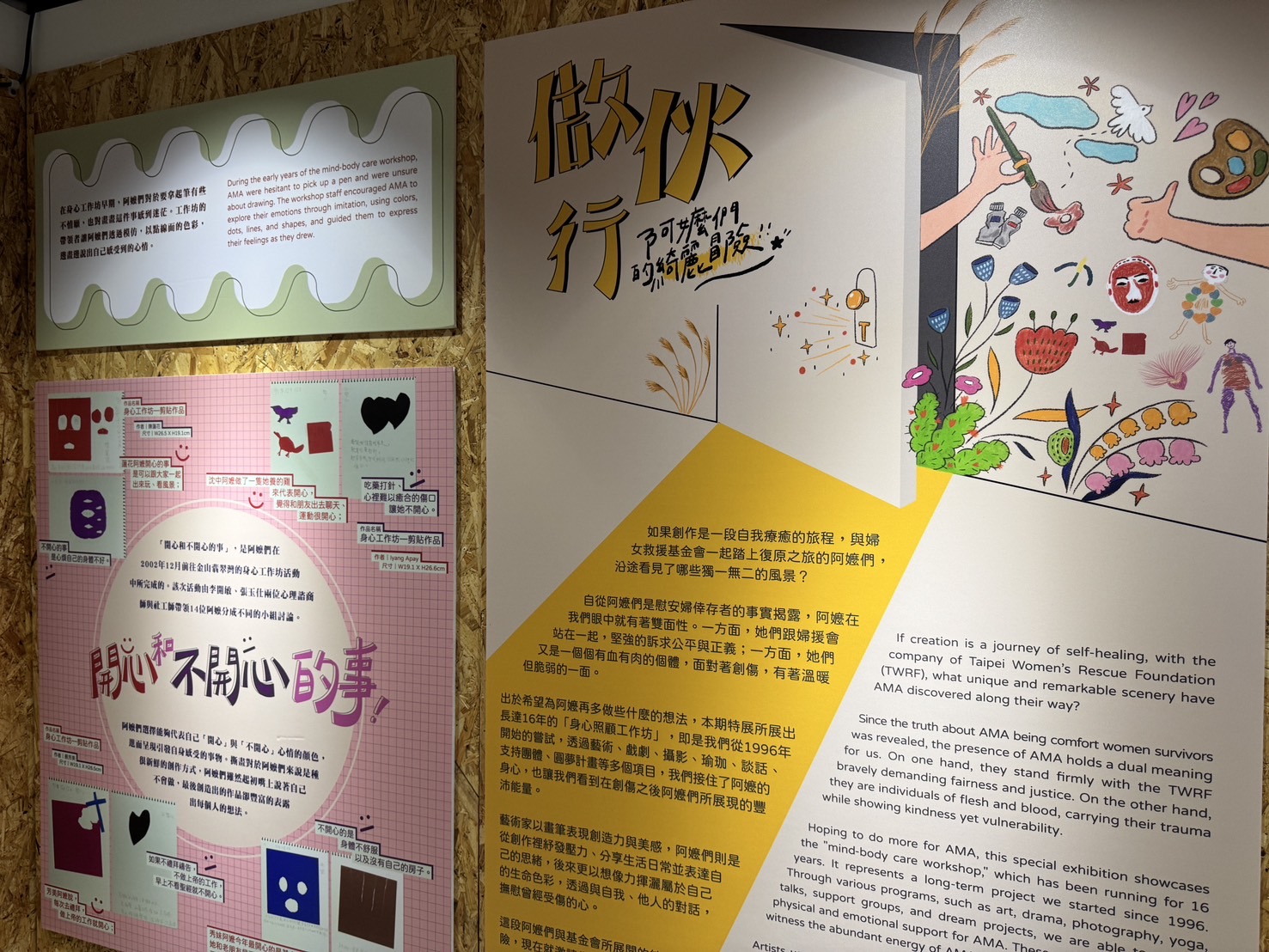慰安婦紀念博物館-阿嬤家和平與女性人權館於即日起至6月30日起展出「做伙行--阿嬤們的綺麗冒險」。提到「慰安婦」的過往,許多人腦海中浮現的或許是灰暗沉重的色調,或充滿控訴與呼喊的畫面。然而,透過本次特展,帶領民眾看見阿嬤們截然不同的一面—充滿生命力與色彩的面貌。藝術家以畫筆詮釋美感,而阿嬤們則運用創作釋放壓力、分享生活故事,並描繪生命的獨特色彩,透過這些作品,她們與自己、與他人展開深刻對話,逐步撫平過往的傷痕。